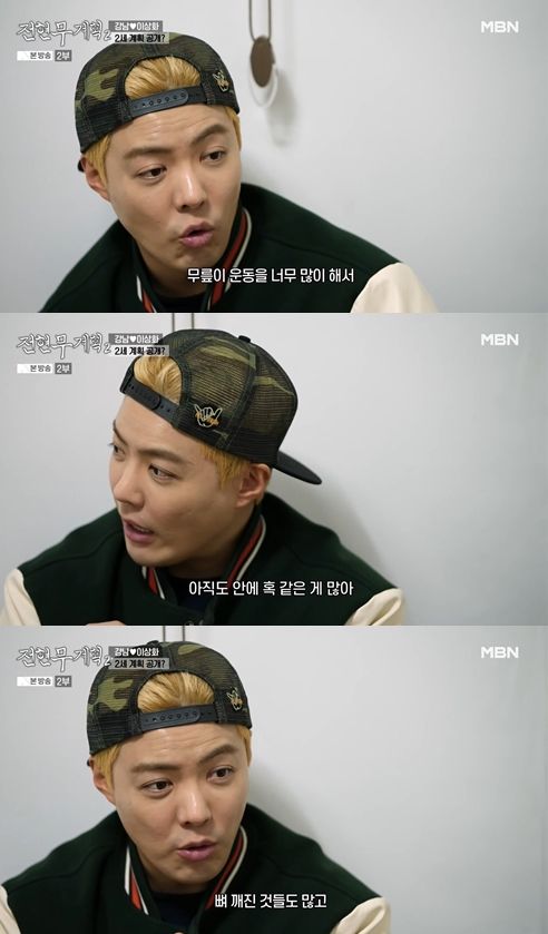 강남은 아이를 천천히 갖으려는 이유에 대해 "상화가 사실은 무릎이 안 좋다. 무릎이 운동을 너무 많이 해서 아직도 안에 혹 같은 거랑 뼈 깨진 것들이 많다"라고 말문을 열었다.