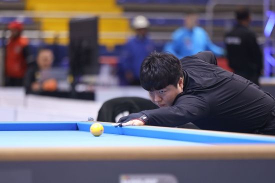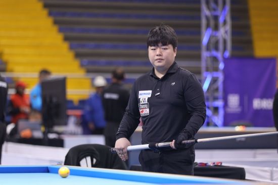 (엑스포츠뉴스 이정범 기자) '2025 보고타 3쿠션 월드컵' 조명우 선수의 경기 모습이 눈길을 끈다.