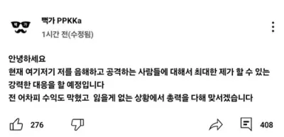 유튜브 수입막혔으니 합의금땡기겠다 이거군