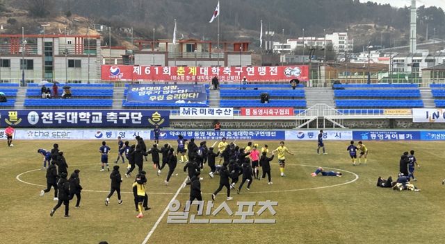 정진혁 감독이 지휘하는 전주대는 1일 오전 11시 경남 통영공설운동장에서 열린 제61회 춘계대학축구연맹전 한산대첩기 결승에서 인천대를 1-0으로 이겼다.