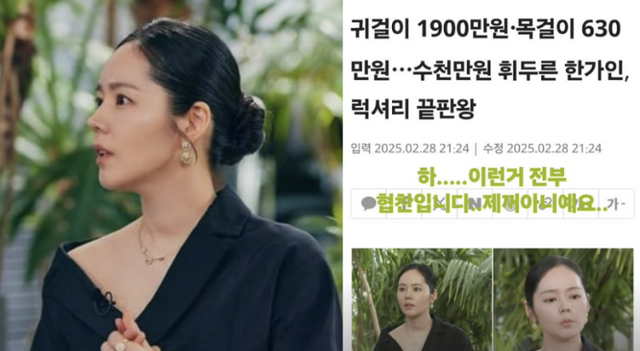 이에 대해 한가인은 “하.. 이런거 전부 협찬입니다. 제 거 아니에요..”라고 남겼다. 착장이 뜻밖의 화제를 모으자 직접 해명에 나선 것으로 보인다.
