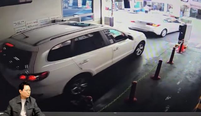 영상을 보면 한 승용차가 공영 주차장에서 나가려고 주차비를 결제하려고 이동했다. 이때 뒤에서 SUV 차량 한 대가 따라붙었다.