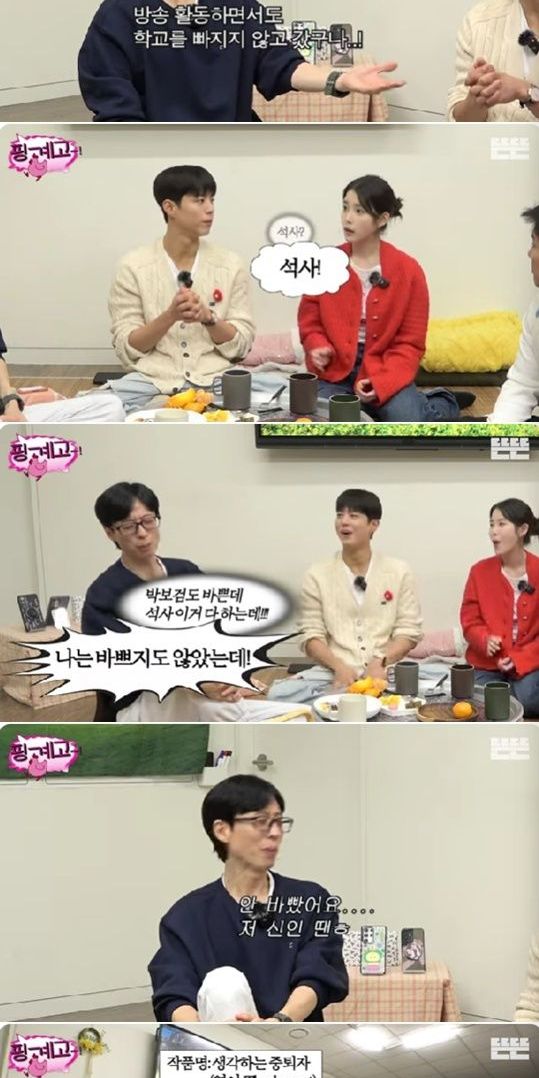 아이유는 "석사라며 박보검의 학력을 대신 자랑했다.