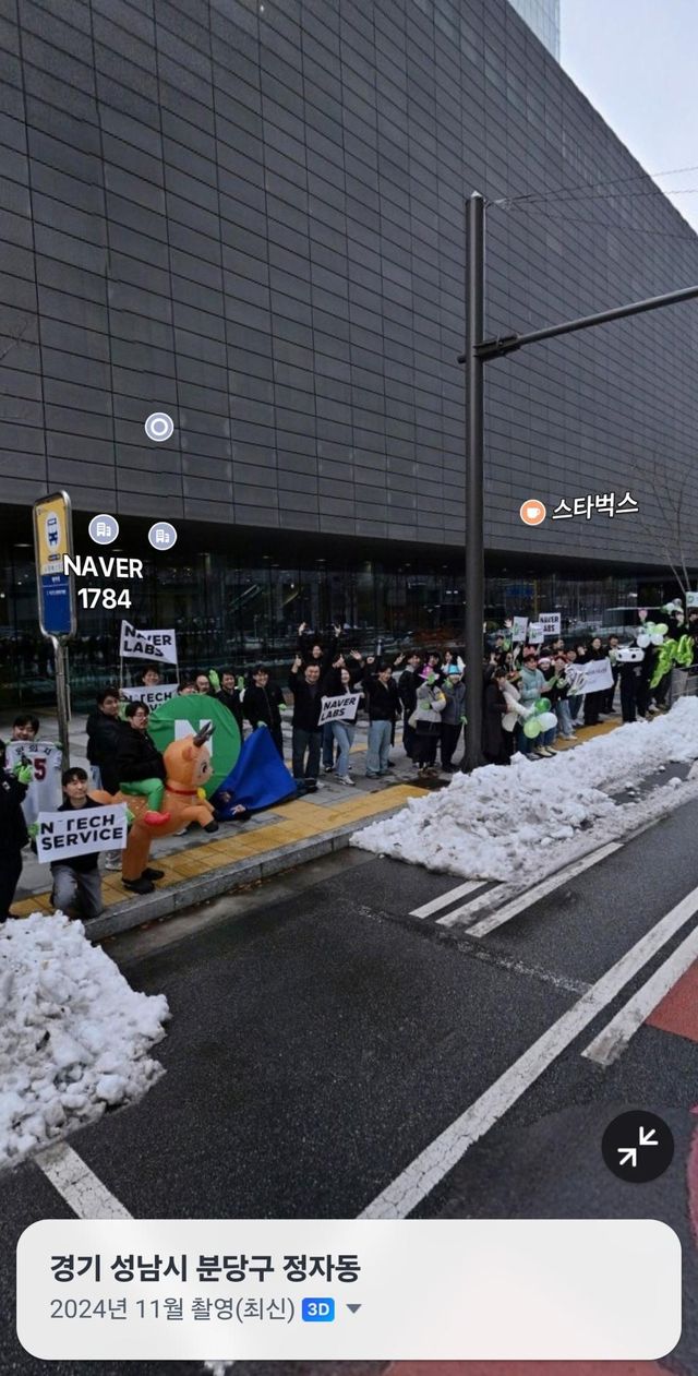 네이버 사옥앞 거리뷰에서 네이버 직원들이 환영(?)해주고 있습니다.