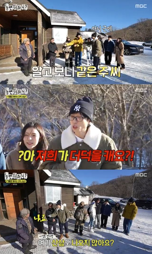 1일 MBC ‘놀면 뭐하니?’는 겨울잠 깨기 프로젝트로, 유재석, 하하, 주우재, 박진주, 이이경, 미주가 ‘쓰저씨’ 김석훈과 함께 강원도 인제군 곰배령에서 더덕을 캐는 모습이 그려졌다.