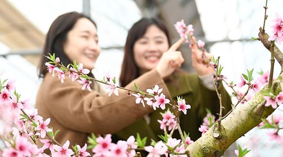 전북 남원시의 시설하우스에서는 매서운 겨울 한파를 이겨낸 복숭아 나무가 붉은 꽃망울을 터뜨리며 봄의 시작을 알리고 있다.