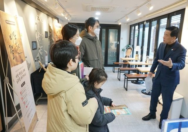 | ▲ 이승로 성북구청장이 일일 독립운동가 체험 ‘비밀결사단’을 진행 중인 문화공간 이육사를 방문해 방문객들과 대화를 나누고 있다. |