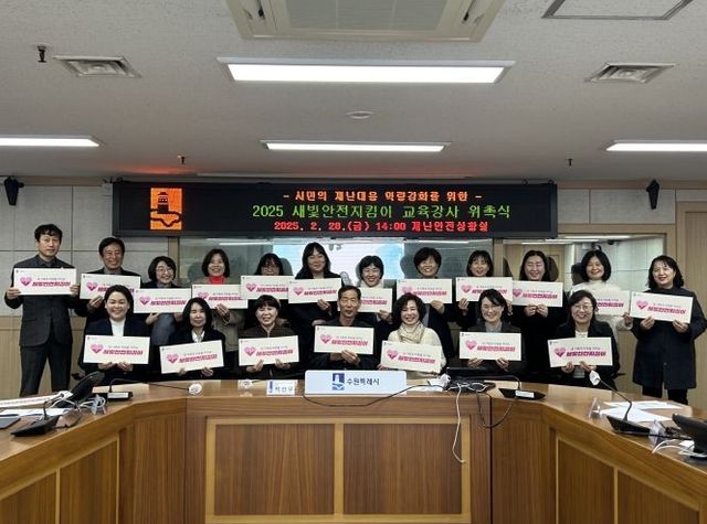 [와이뉴스] 수원시는 2월 28일 시청 재난안전상황실에서 2025년 새빛안전지킴이 교육 강사 20명에게 위촉장을 수여했다. 위촉 기간은 올해 12월 31일까지다.