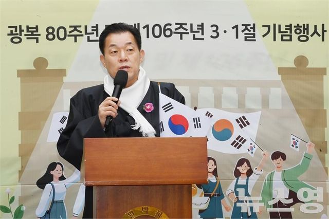 1일 수원박물관 중정에서 열린 제106주년 3·1절 기념행사에서 기념사를 한 이재준 시장은 “조국의 독립을 위해 온몸을 바친 수원의 독립운동가와 민중의 이야기를 시민과 우리 후손들이 기억할 수 있도록, 수원시도 지혜를 모으겠다”며 “독립운동가와 독립에 헌신한 모든 분에게 존경을 표한다”고 밝혔다.