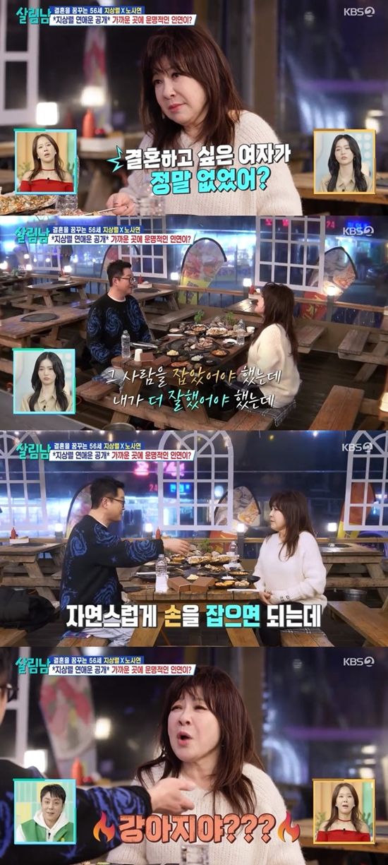 1일 방송된 KBS 2TV '살림하는 남자들 시즌2'에서는 지상렬이 노사연에게 데이트 코칭을 받는 모습이 전파를 탔다.