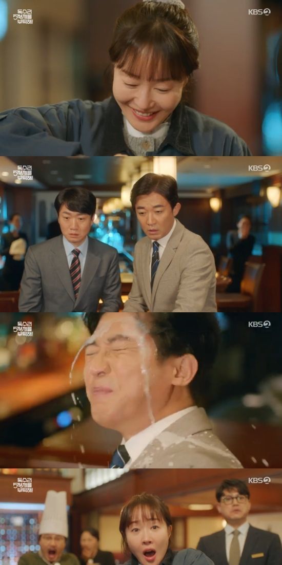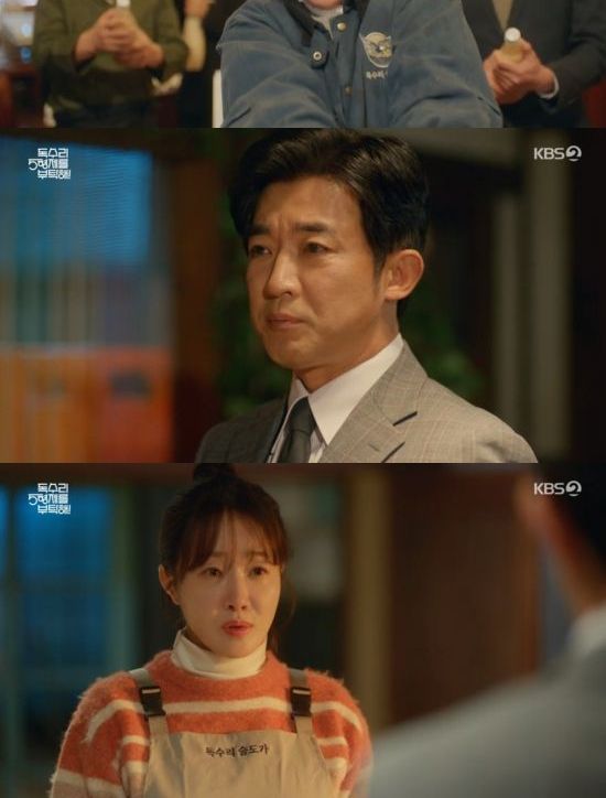 1일 방송된 KBS 2TV 주말드라마 '독수리 5형제를 부탁해'(이하 '독수리 5형제') 9회에서는 마광숙(엄지원 분)이 한동석(안재욱)에게 선물한 막걸리를 돌려받은 모습이 그려졌다.