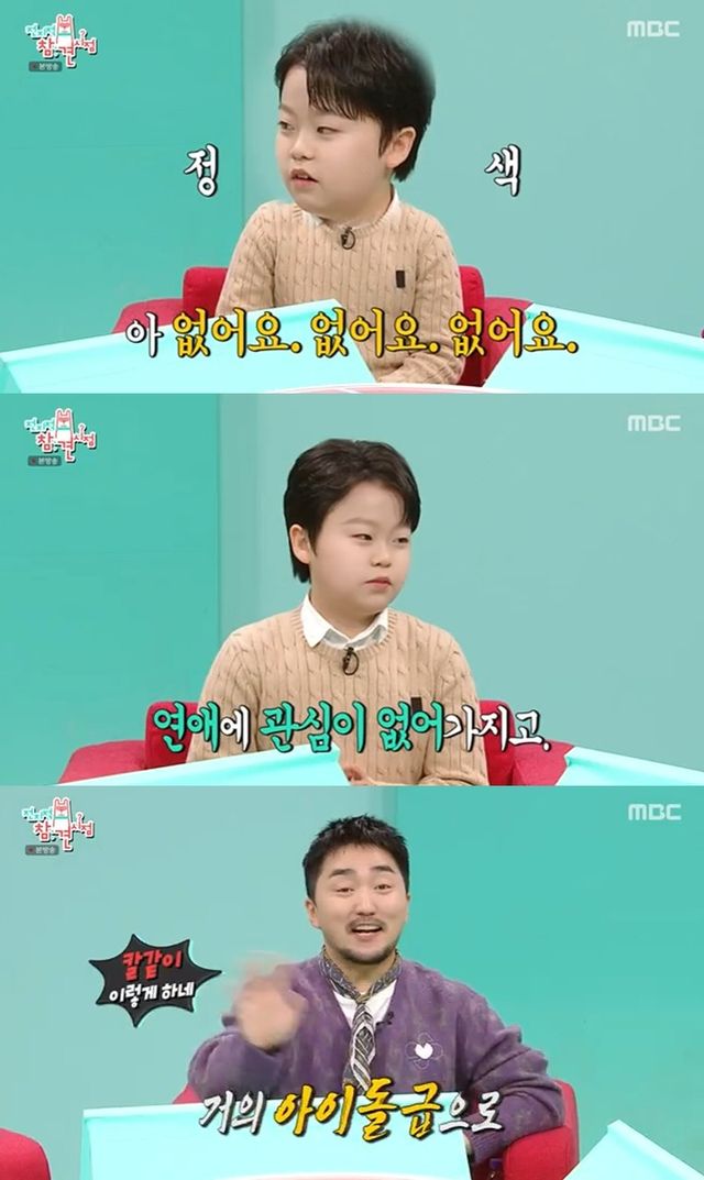 한편 올해로 13살이라는 황민호는 여자친구 있냐는 물음에 단호하게 없다면서 "연애에 관심이 없다"고 말했다. 이에 전현무는 "거의 아이돌급으로 (부정한다)"이라고 말해 웃음을 유발했다.
