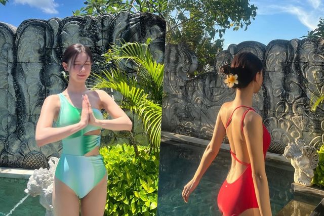 공개된 사진 속 미연은 휴양지로 여행을 떠난 듯 이국적 풍경 속 야외 수영을 즐기고 있는 모습이다. 가슴 아래와 복부 부분이 뚫려 있는 언밸런스 모노키니를 입고 있는 미연은 손을 합장한 채 눈을 감고 은은한 미소를 띠고 있다. 또 다른 사진 속에는 미연의 강렬한 레드 수영복 자태가 담겼다. 뒤태를 자랑한 미연은 뻥 뚫린 등과 봉긋한 애플힙으로 S라인을 뽐냈다.