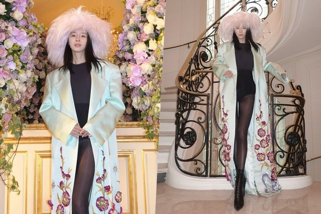 오는 5월 결혼을 앞둔 모델 아이린은 지난달 초, 파리 오트 퀴튀르 위크에서 블랙 보디수트룩을 선보였다. 보디수트에 검은 스타킹을 매치, 하의를 입지 않은 듯한 패션으로 시선을 강탈한 아이린은 한국적 무늬가 수 놓인 오버핏 실버 롱코트를 걸쳐 우아함을 더했다.
