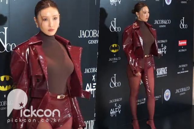 가수들 역시 과감한 팬츠리스로 관능적 아우라를 더했다. 화사는 최근 열린 제이콥앤코 코리아 그랜드 오픈 행사 포토월에서 파격룩으로 이목을 사로잡았다. 볼륨감이 도드라진 톱에 레더 재킷과 숏팬츠를 매치, 여기에 버건디 스타킹까지 더해 남다른 패션 센스를 자랑했다. 속옷 사이즈의 하의를 입고 등장한 화사는 글래머러스한 체형으로 팬츠리스룩을 완벽 소화했다.