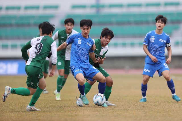 중앙대의 파상공세가 이어졌다. 전반 23분 김도연이 때린 슈팅이 골대 옆으로 살짝 빠지며 아쉬움을 삼켰다. 건국대는 전반 25분 공격수 김건남이 중앙대의 후방 빌드업을 끊고 슈팅까지 연결했으나 상대 수비수 맞고 골키퍼에게 향했다.