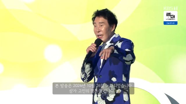 무대 초반 '전국노래자랑' 측은 '본 방송은 2024년 10월 26일 녹화되었습니다. 삼가 고인의 명복을 빕니다'라며 송대관을 추모했다.