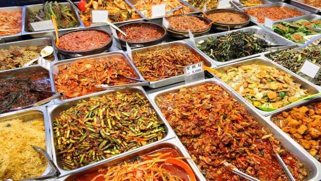 반찬 가게의 다양한 한국식 반찬들 / 501room-shutterstock.com