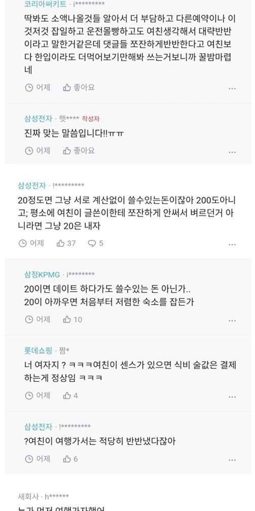 블라인드) 여친이랑 여행갔다왔는데 숙소비 ㅜ