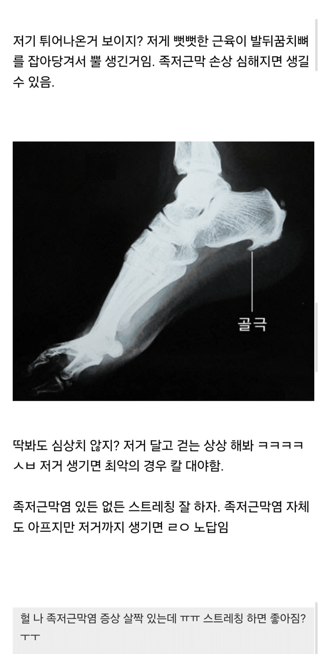 족저근막염 내버려두면 발바닥에 뿔도 생김,,