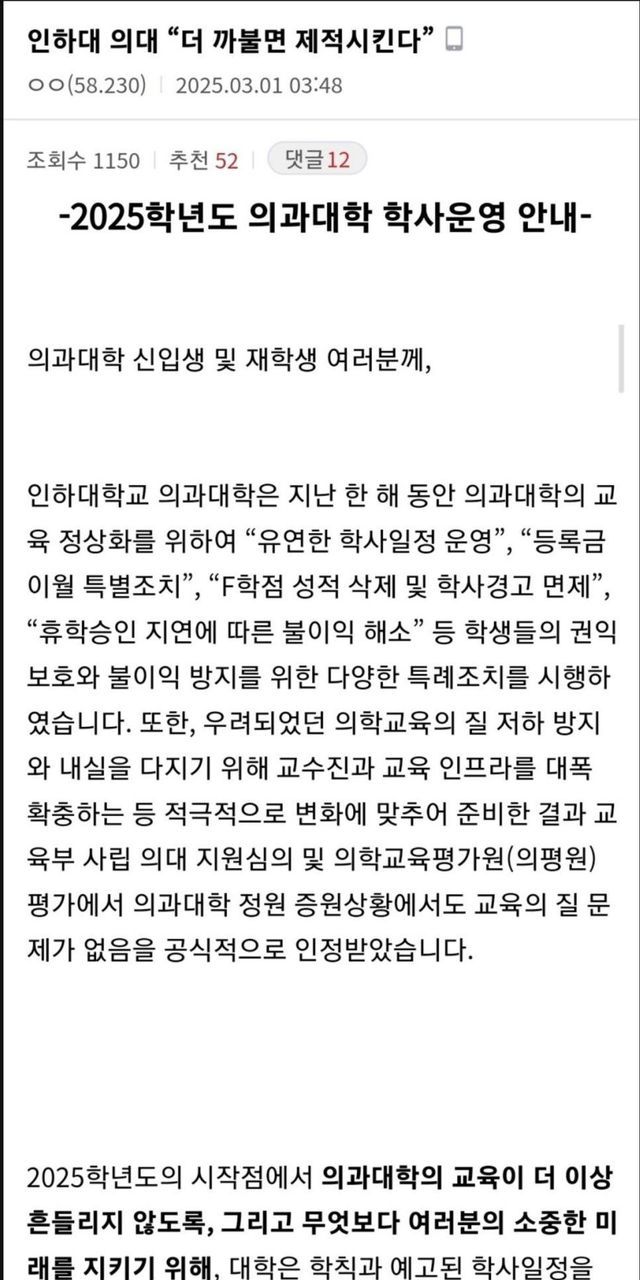 의대 신입생들도 기존 병신들이 휴학 강요하는데