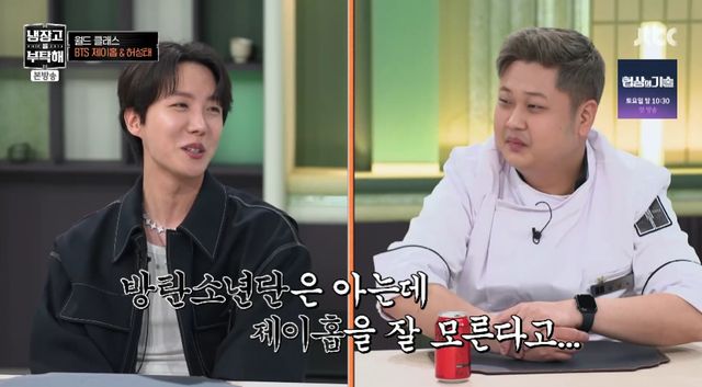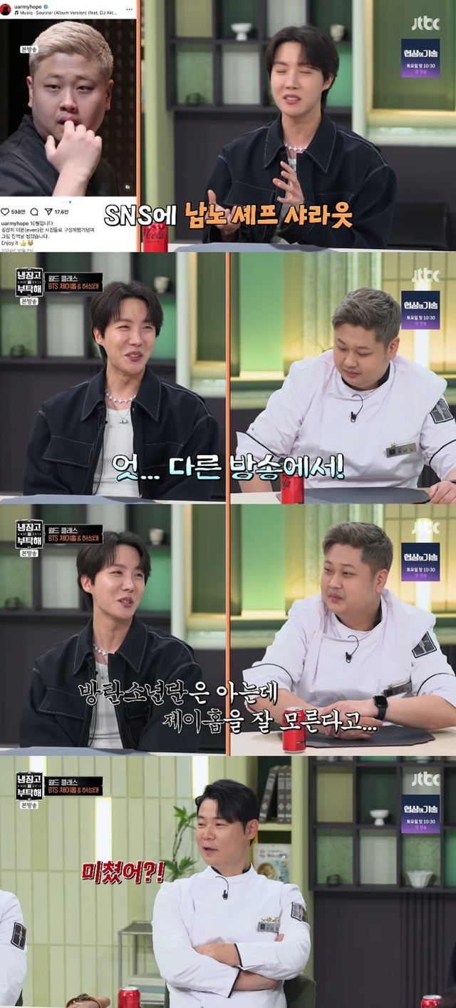 윤남노는 "제가 욕을 많이 먹었다"며 좌불안석이 됐고, '흑백요리사'를 봤다는 제이홉은 "남노 셰프님의 매력에 빠졌다. SNS에 포스팅을 했었다"고 언급했다.