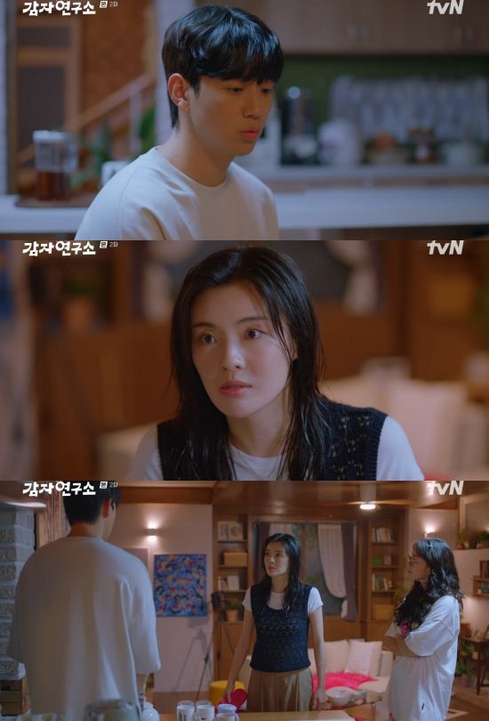 2일 방송된 tvN 새 토일드라마 '감자연구소' 2회에서는 소백호(강태오 분)가 김미경(이선빈)의 게스트하우스에서 살게 된 모습이 그려졌다.