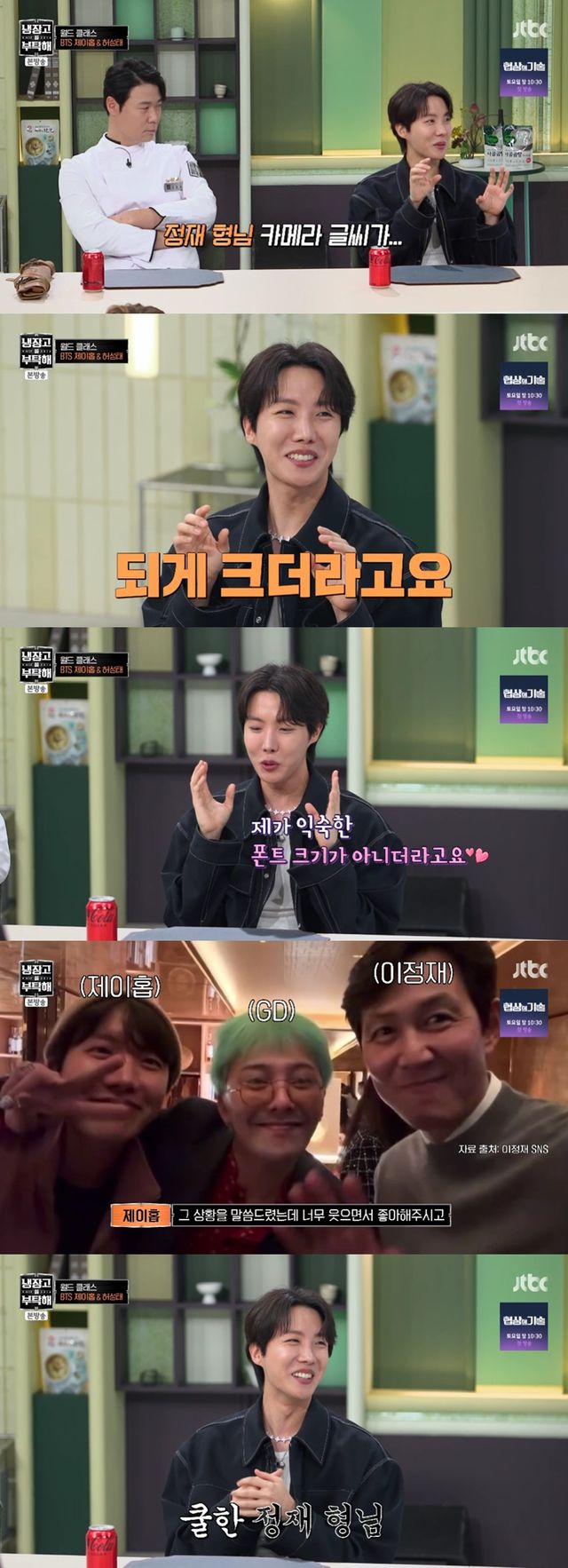 (엑스포츠뉴스 이유림 기자) BTS 제이홉이 이정재의 휴대폰 폰트 크기에 놀랐다고 전했다.