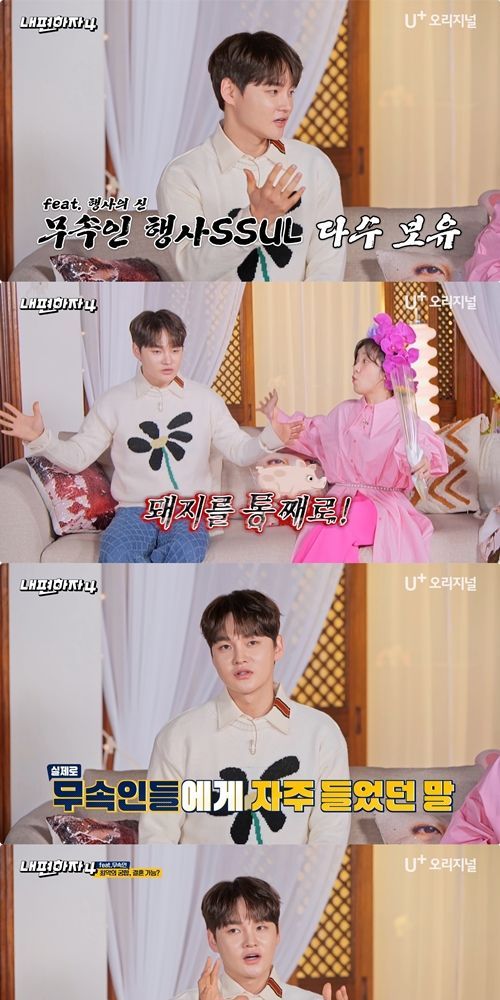 박서진은 “무대 위에 돼지 머리가 아니라 아예 통돼지를 여러 마리 놓는다”, “심지어 어떤 무속인은 돼지를 등에 업고 작두 위에서 굿을 했다”라고 말해 놀라움을 선사했다.