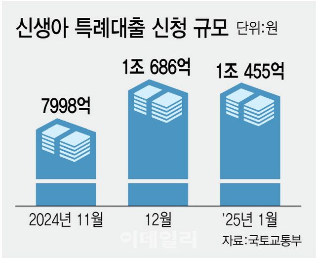 3일 국토교통부가 국회 국토교통위원회 소속 더불어민주당 이연희 의원에게 제출한 자료에 따르면, 신생아 대출을 출시한 지난해 1월 29일부터 올해 1월 30일까지 1년간 총 13조2458억원의 대출 신청이 들어왔다.