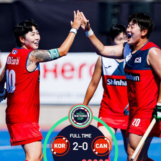 김윤 감독이 지휘한 한국은 2일(현지시간) 칠레 산티아고에서 열린 2024~25 FIH 여자 네이션스컵 대회 마지막 날 캐나다와 7위 결정전에서 2-0으로 이겼다.