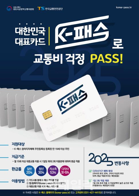 지난해 K-패스 이용자들은 월 평균 대중교통비 6만8000원 중 1만8000원(26.6%)을 환급받은 것으로 나타났다. 특히 청년층과 저소득층은 월평균 각각 2만원, 3만7000원을 환급받아 대중교통비 부담 완화에 효과가 큰 것으로 드러났다.