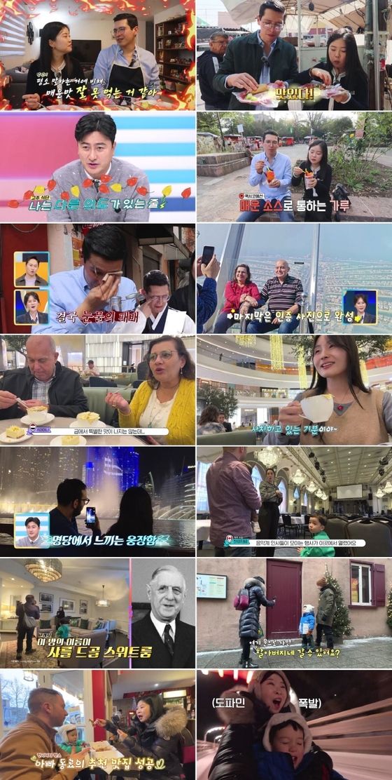 ‘두바이 패밀리’윤서림X스티븐도 처음으로 스튜디오 출연진들과 인사를 나눴다.안정환-이혜원은“얼마 전 결혼23주년 기념으로 두바이 여행을 다녀왔다”며 반가워했다.한국-이집트 국제 부부인 이들은 이집트에서 처음으로 두바이를 방문한 시부모님을 모시고‘두바이 효도 관광’을 시작했다.가장 먼저 이들은 모노레일을 타고 전망대로 이동해,바다 위의 인공섬인‘팜 주메이라’를 구경했다. “데이비드 베컴,톰 크루즈 등 유명 인사들의 별장이 즐비한 두바이의 부촌”이라는 파비앙의 설명이 곁들여진 가운데,이들은‘팜 주메이라’를 배경으로 부모님의 기념 촬영을 했다.