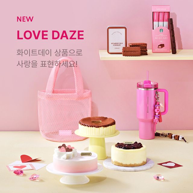 스타벅스 코리아(대표이사 손정현)가 화이트데이를 맞아 3월 4일부터 16일까지 ‘LOVE DAZE’를 주제로 온라인 단독 프로모션을 진행한다. 이번 프로모션은 화이트데이를 더욱 달콤하게 즐기기 위한 다양한 한정판 MD와 디저트 등을 선보이며, 할인 혜택도 마련했다.