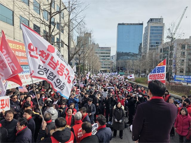 이날 집회에는 윤상현 의원, 박대출 의원을 비롯해 전국 각지에서 모인 당원과 시민들이 참석했다.