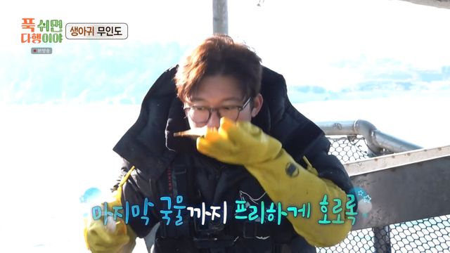 이후 선장님은 "이제 어느 정도 드셨으니까 정리하고 빨리 빨리 그물 당겨야 한다"라고 알렸다. 다들 일어서는데 김대호만이 "잠시만. 마저 먹겠다. 일들 하셔라"며 요지부동이었다.