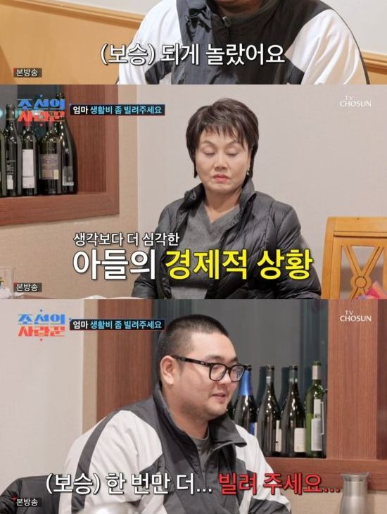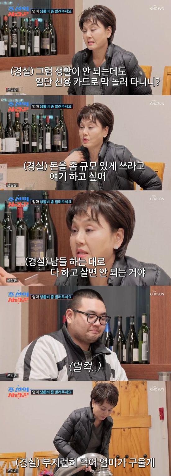 3일 방송된 TV조선 '조선의 사랑꾼'에서는 손보승이 이경실에게 돈을 빌려달라고 부탁하는 장면이 전파를 탔다.