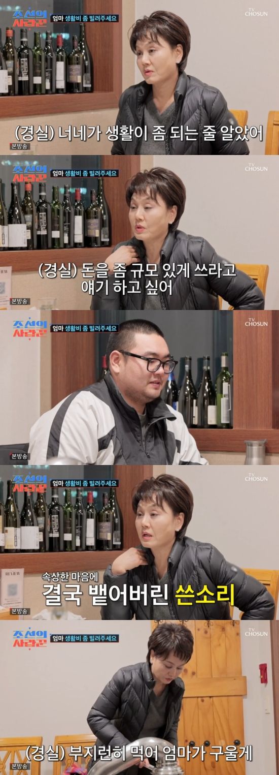 3일 방송된 TV조선 '조선의 사랑꾼'에서는 이경실이 손보승의 경제 사정을 걱정하는 장면이 전파를 탔다.