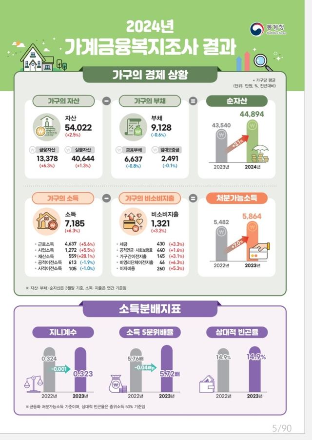 가구당 자산 5.4억 (순자산 4.5억) 가구당 소득 7185만원