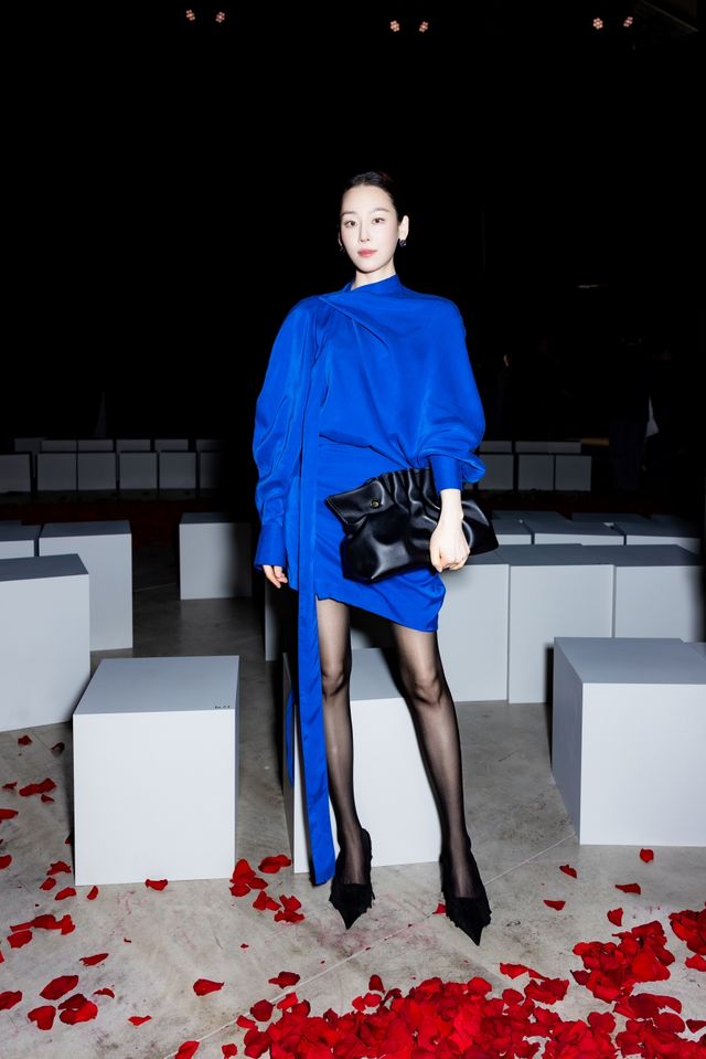 이날 서현진은 강렬한 블루 컬러와 비대칭 헴라인이 돋보이는 드레스에 블랙 소프트 백을 매치하여 독보적인 매력을 자아냈다.