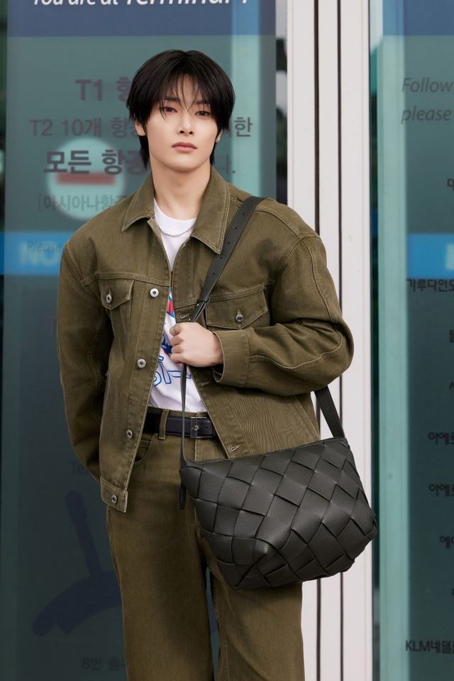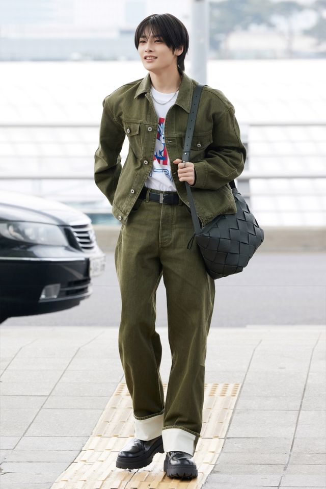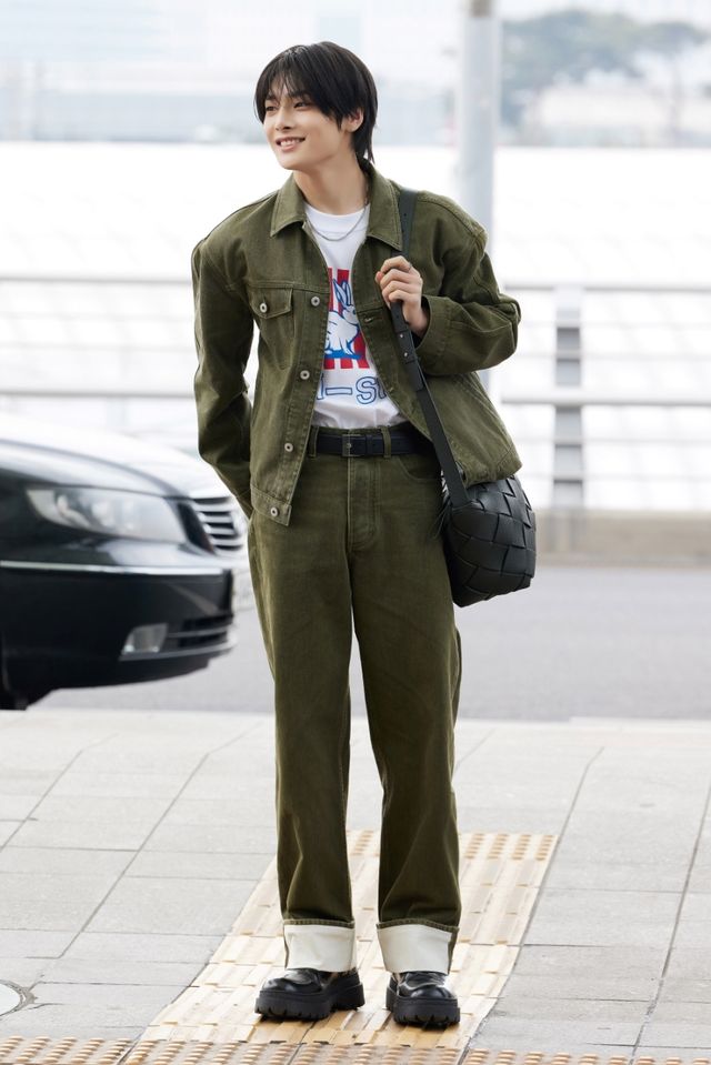 이날 아이엔은 보테가 베네타의 컬러 스톤 워시 데님 자켓과 팬츠에 Sì-Sì 토끼 로고 프린트의 저지 티셔츠, 그리고 하이웨이 첼시 부츠를 착용해 캐주얼하면서도 스타일리시한 무드의 룩을 선보였다. 특히, 하우스의 장인정신이 담긴 인트레치오 수공기법으로 제작된 부드러운 그레인 레더 소재의 디아고 호보백을 매치해 완벽한 공항 패션을 선보였다.