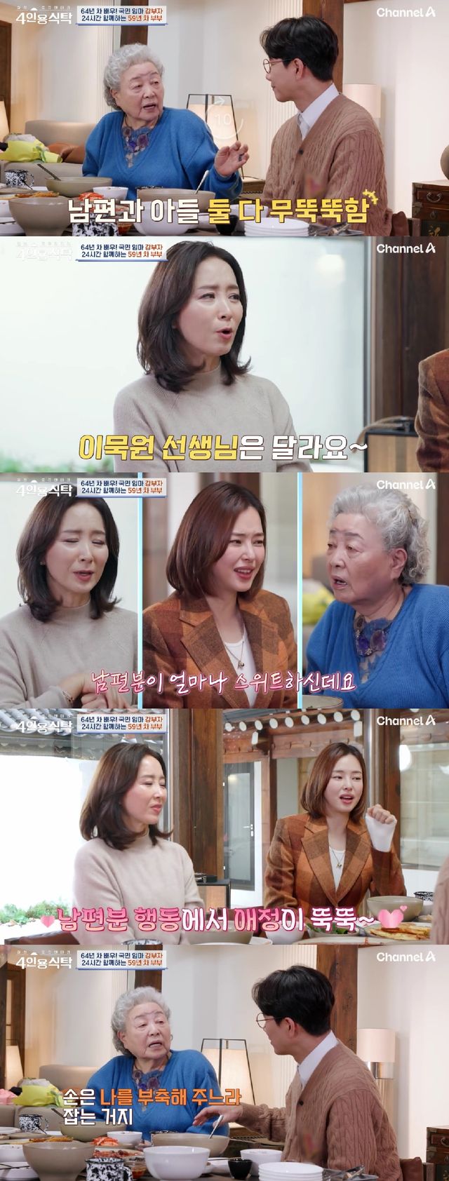 강부자는 남편인 이묵원과 아들의 성격이 모두 무뚝뚝하다고 했지만 윤유선과 이하늬는 "그래도 이묵원 선생님이 얼마나 스윗하신데"라고 입을 모았다.
