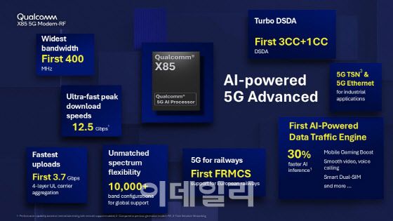 특히, X85 모뎀-RF는 하드웨어 텐서 가속기가 탑재된 퀄컴 5G AI 프로세서를 통해 AI 기반 속도 및 효율성을 극대화했다. 이를 통해 네트워크 커버리지 개선, 소비 전력 절감, 끊김 없는 연결성을 제공하여 사용자 경험을 획기적으로 향상시켰다.