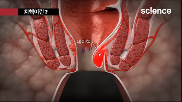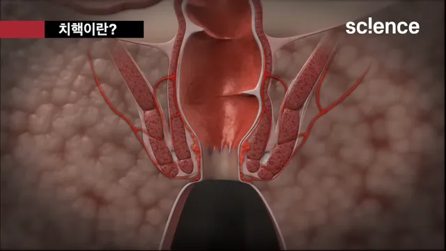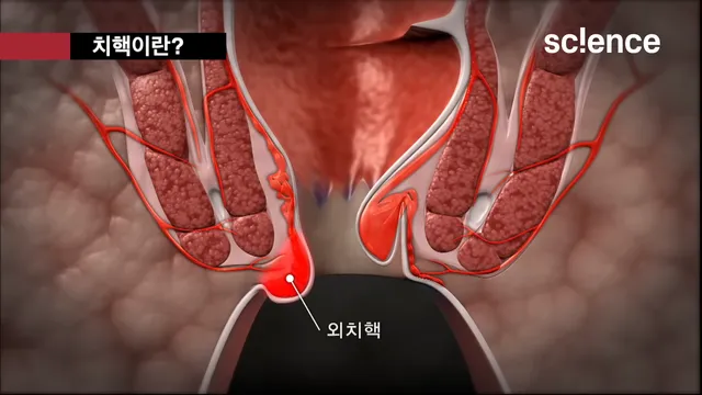 항문과 직장을 구분하는 치상선 중심으로 위쪽에 생기는 치핵은 내치핵