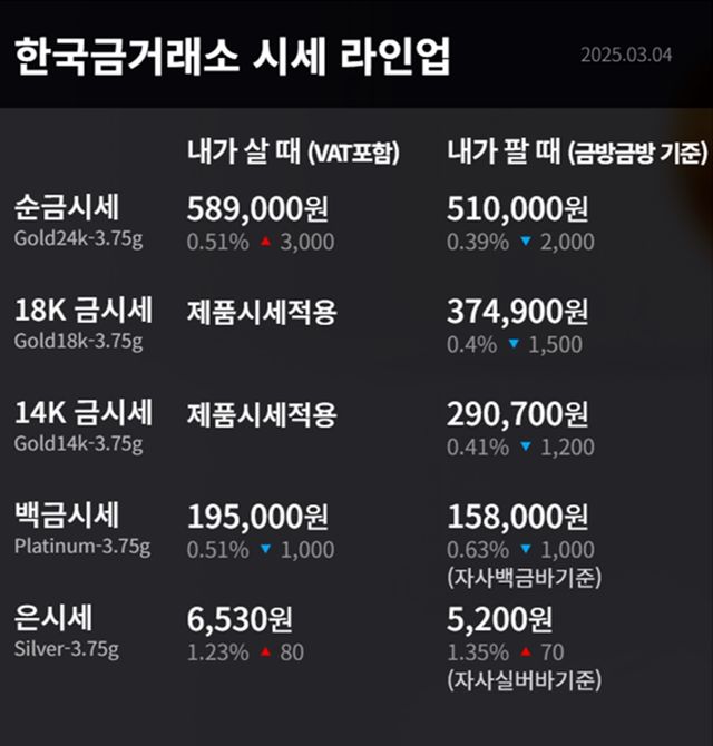 순금(24K) : 매입가 58만 9000원 / 매도가 51만 원