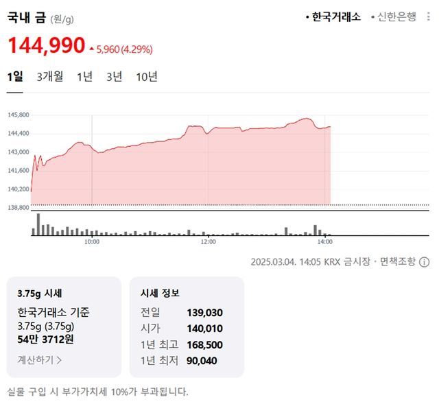 국내 금시세도 이러한 국제 금값 상승 흐름을 반영해 올랐다.