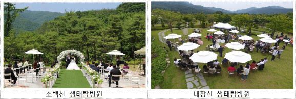 먼저 예식 장소를 당초 9개 생태탐방원에서, 국립공원의 아름다운 명소 5곳을 새로 선정해(총 14곳) 예비 부부들의 선택의 폭을 넓혔다.