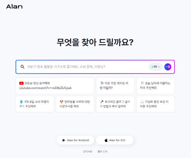 대화형 거대언어모델(LLM) 서비스로 출시된 앨런은 지난해 12월 AI 검색 엔진 서비스로 탈바꿈했다. 이후 지난달 국내 AI 검색 서비스로는 최초로 딥시크의 언어모델 R1을 적용하고 본격적인 멀티 LLM을 지원하기 시작했다.