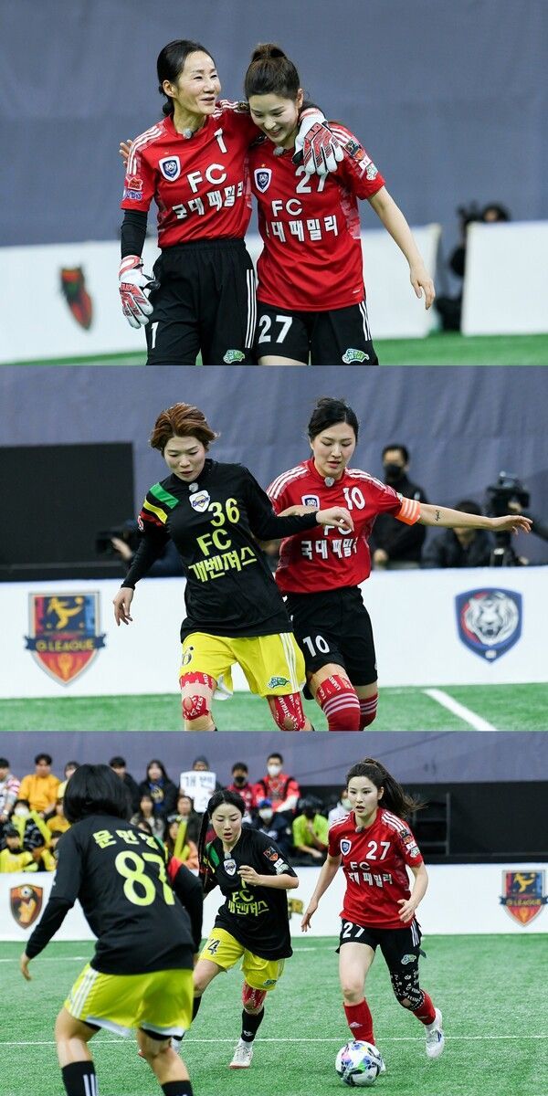 한편, ‘오나우딩요’ 오나미가 전반전 시작을 알린 지 얼마 지나지 않아 또다시 선제골을 터뜨렸다. 이에 ‘FC국대패밀리’는 당황한 듯했으나, 곧 각성하고 슈팅 쇄도를 펼친 끝에 ‘미니황소’ 황희정이 동점 골을 성공시켰다. 전반 1분이 채 가기도 전 1:1의 스코어를 만들어 낸 두 팀의 접전에 보는 이들은 전원 놀라움을 금치 못했다고. 결과를 예측할 수 없는 G리그, ‘개국공신’ 더비의 승자는 과연 누가 될 것인지 궁금증을 자극한다.