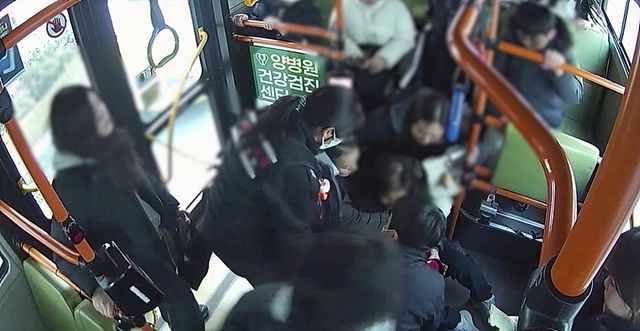 버스 손잡이를 잡고 버텨 보려던 그는 중심을 잃고 다른 승객과 부딪힌 뒤 ‘쿵’ 소리와 함께 바닥에 쓰러졌다. 자칫 큰 부상으로 이어질 수 있는 위험한 상황이었다.
